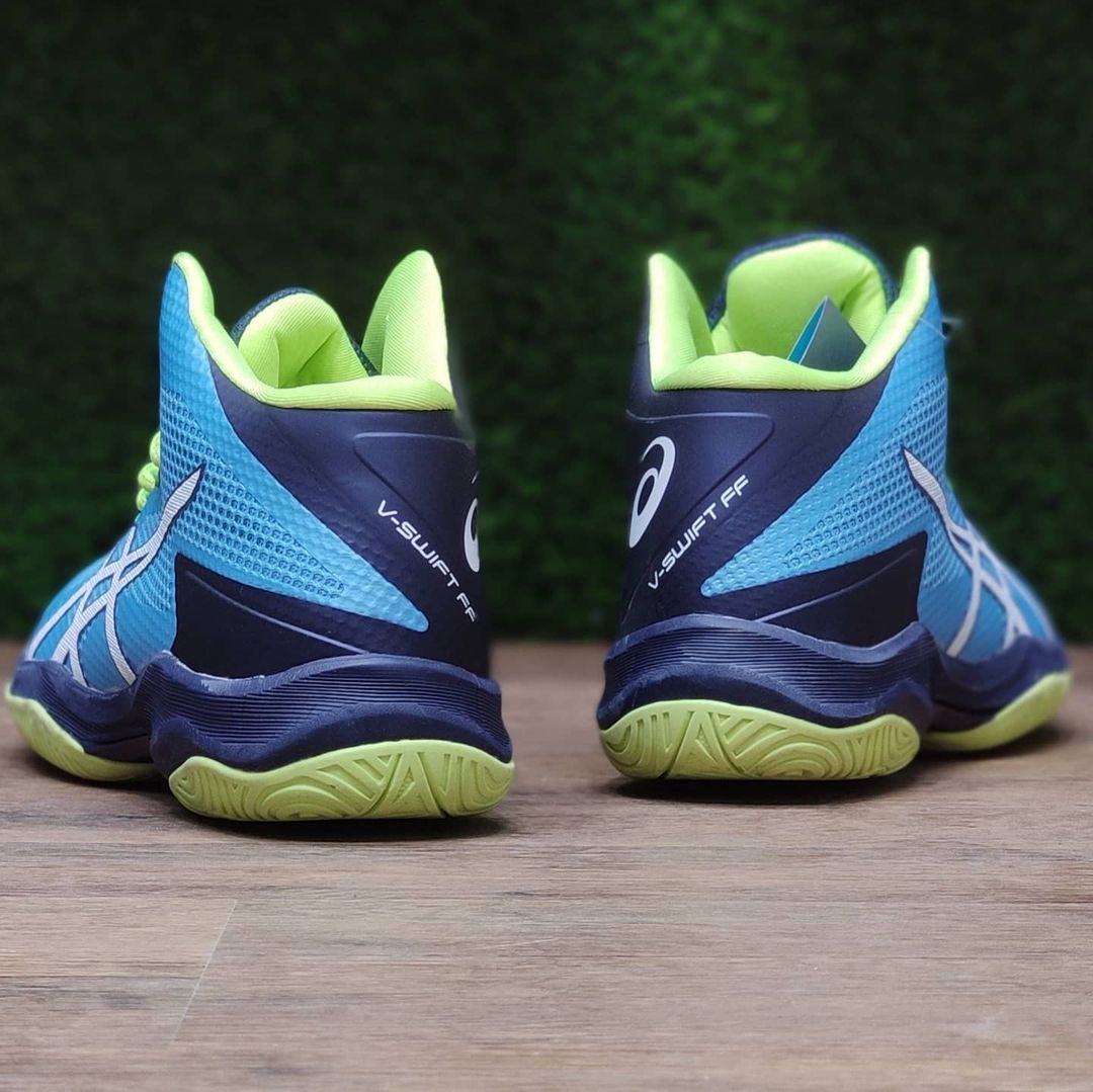 این مدل از کفش والیبال آسیکس مدل V SWIFT LIGHTBLUE/NAVY/GREENدارای ساق بلندی می باشد تا مچ پا را نیز پوشش دهد و حمایت کافی را از پای ورزشکار داشته باشد. همچنین کفی کفش دوخته شده می باشد که این کار احتمال پارگی و گسستگی کفی را به شدت کاهش می دهد و عمر مفید کفش را بالا می برد. این کفش انعطاف بالایی داشته و جلوی حرکات ورزشکار را نمی گیرد. به دلیل جنس نرم و طبی کفی کفش، از شدت ضربات وارده به کف و مچ پا می کاهد و والیبالیست به راحتی می تواند به تمرینات خود بپردازد. این مدل از کفش والیبال در سایز های 40 تا 45 طراحی و تولید شده است. همه برند های معتبر در جهان محصولات خود را به صورت های کپی یعنی نمونه های کپی شده با کیفیت از روی نمونه اصلی تولید می کنند. این کار با هدف استفاده عموم مردم و ورزشکاران از کفش های طبی و استاندارد انجام می گیرد. با تولید کفش های های کپی، کسانی که توانایی خرید نمونه های اُرجینال و اصلی را ندارند نیز می توانند از نمونه های مشابه ولی با کیفیت و استاندارد استفاده نمایند. همین کار از بروز مشکلات اسکلتی در نسل های آینده نیز جلوگیری می کند.
