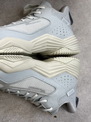 زیره لاستیکی کفش با چسبندگی بالا مخصوص زمین‌های سالنی، کنترل عالی در توقف‌ها، استارت‌های سریع و تغییر جهت‌های ناگهانی ایجاد می‌کند و اعتمادبه‌نفس بازیکن را افزایش می‌دهد.