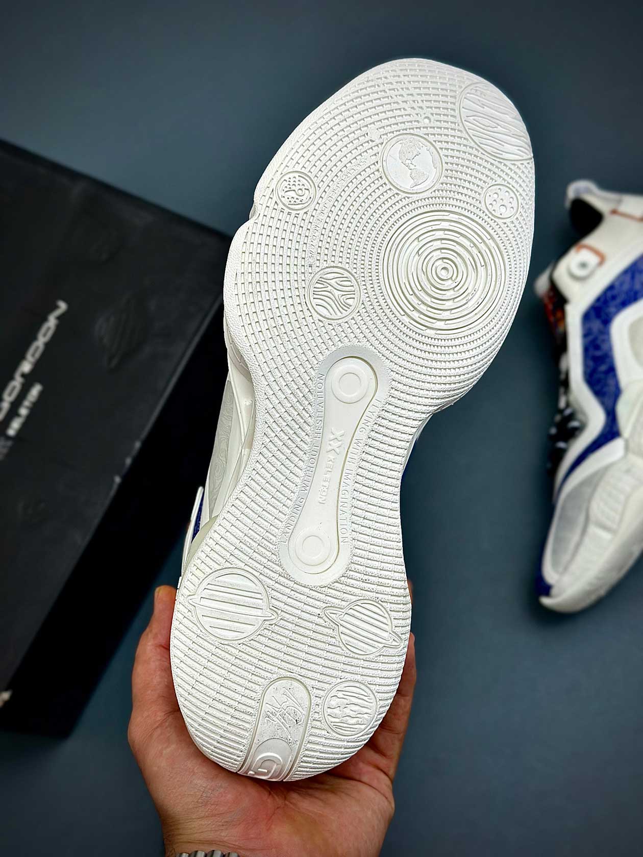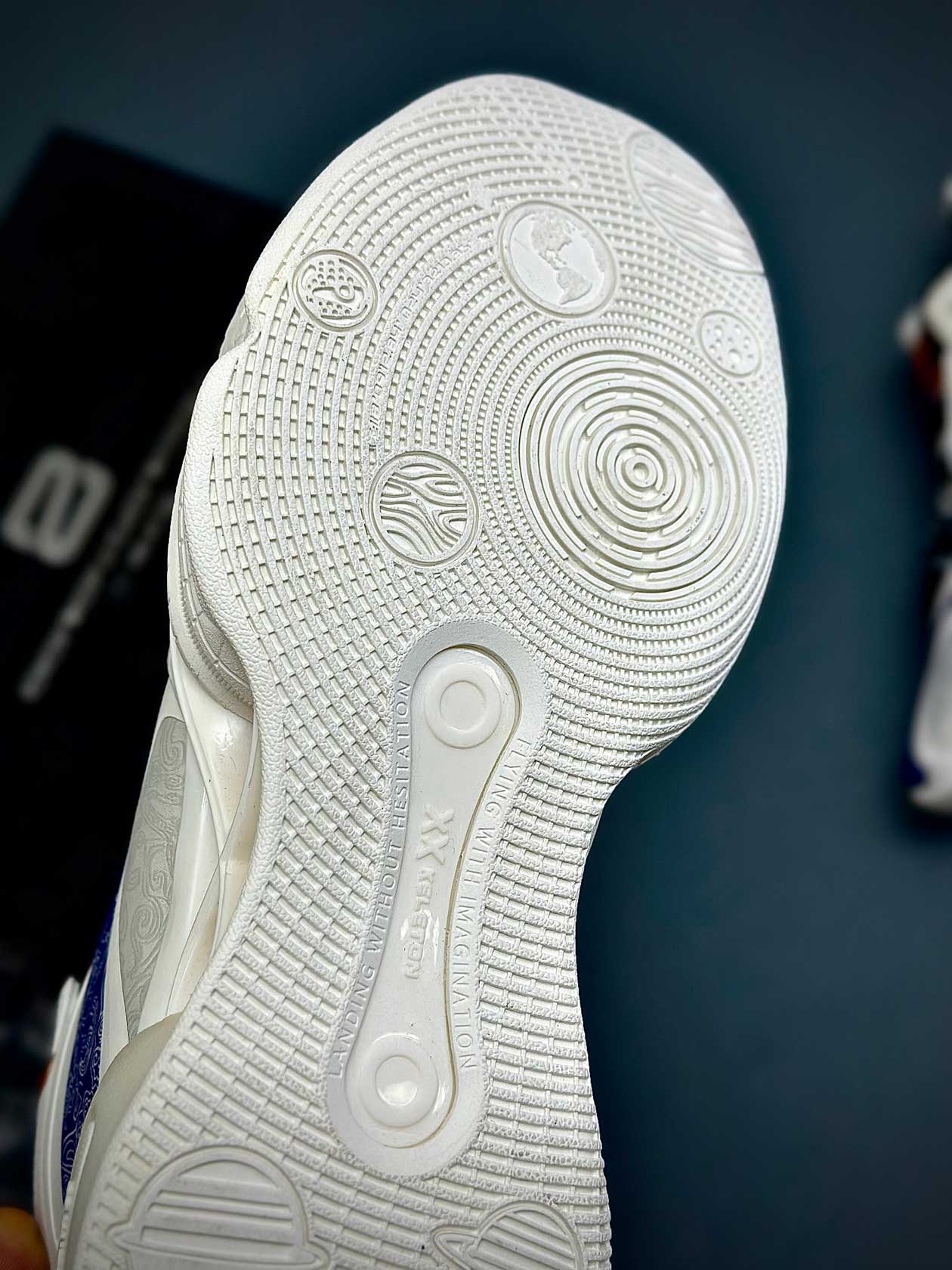 زیره لاستیکی کفش با چسبندگی بالا مخصوص زمینهای سالنی، کنترل عالی در توقفها، استارتهای سریع و تغییر جهتهای ناگهانی ایجاد میکند و اعتمادبهنفس بازیکن را افزایش میدهد.