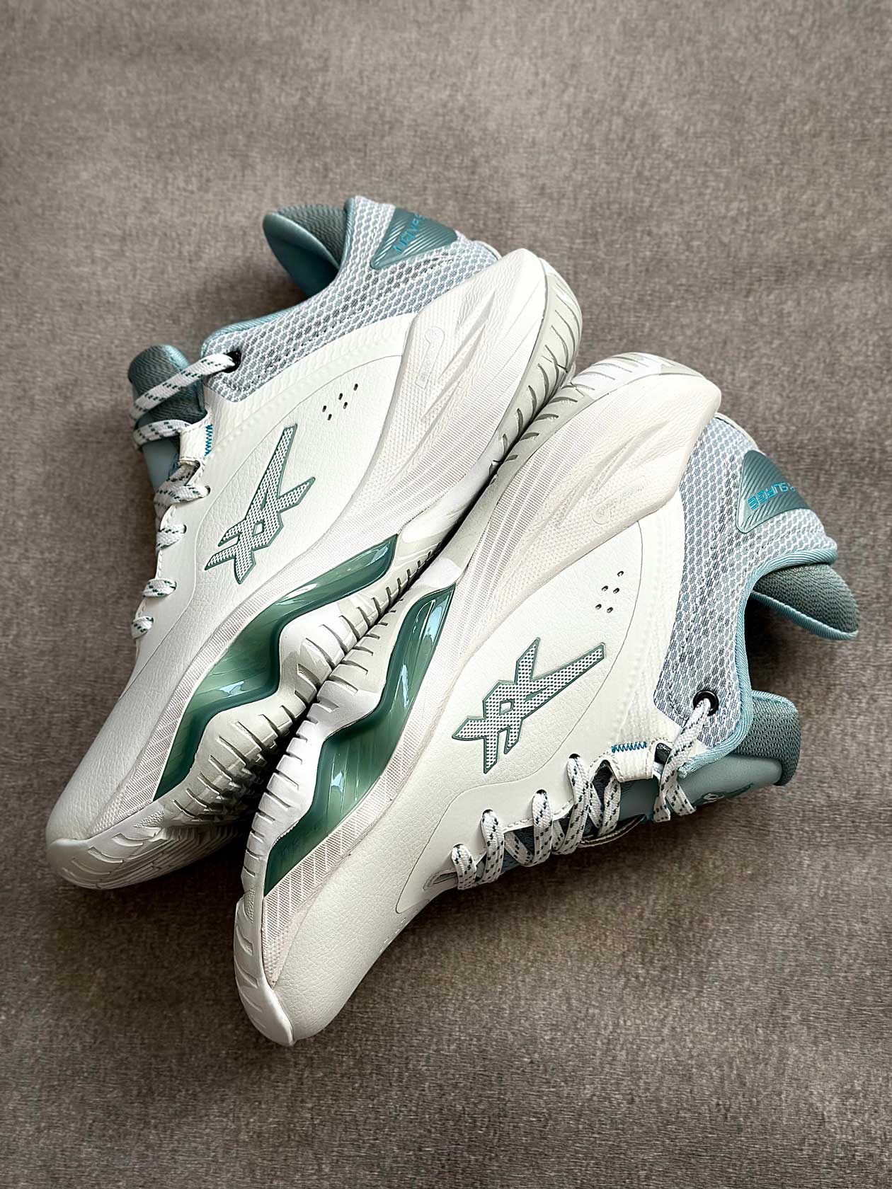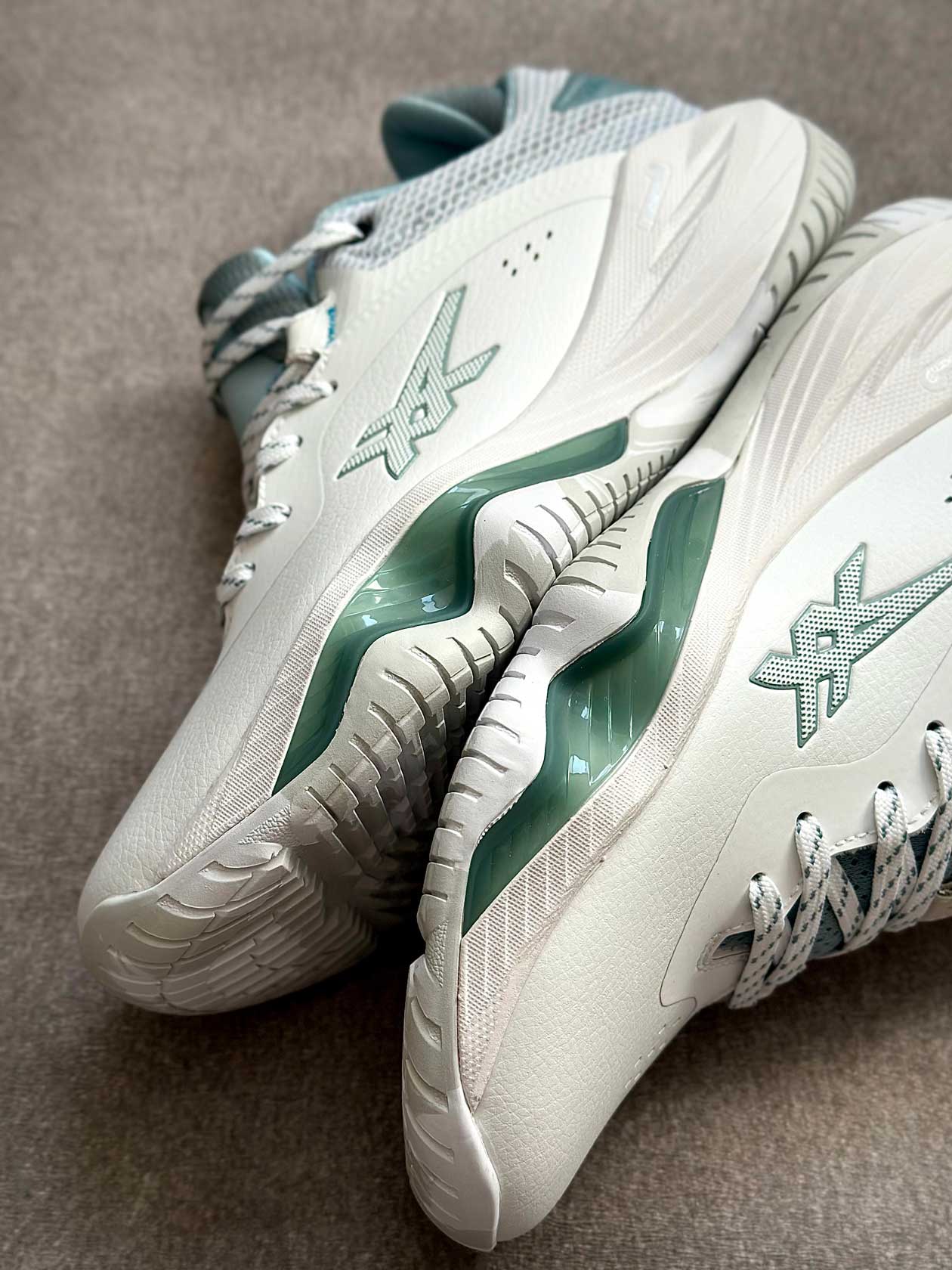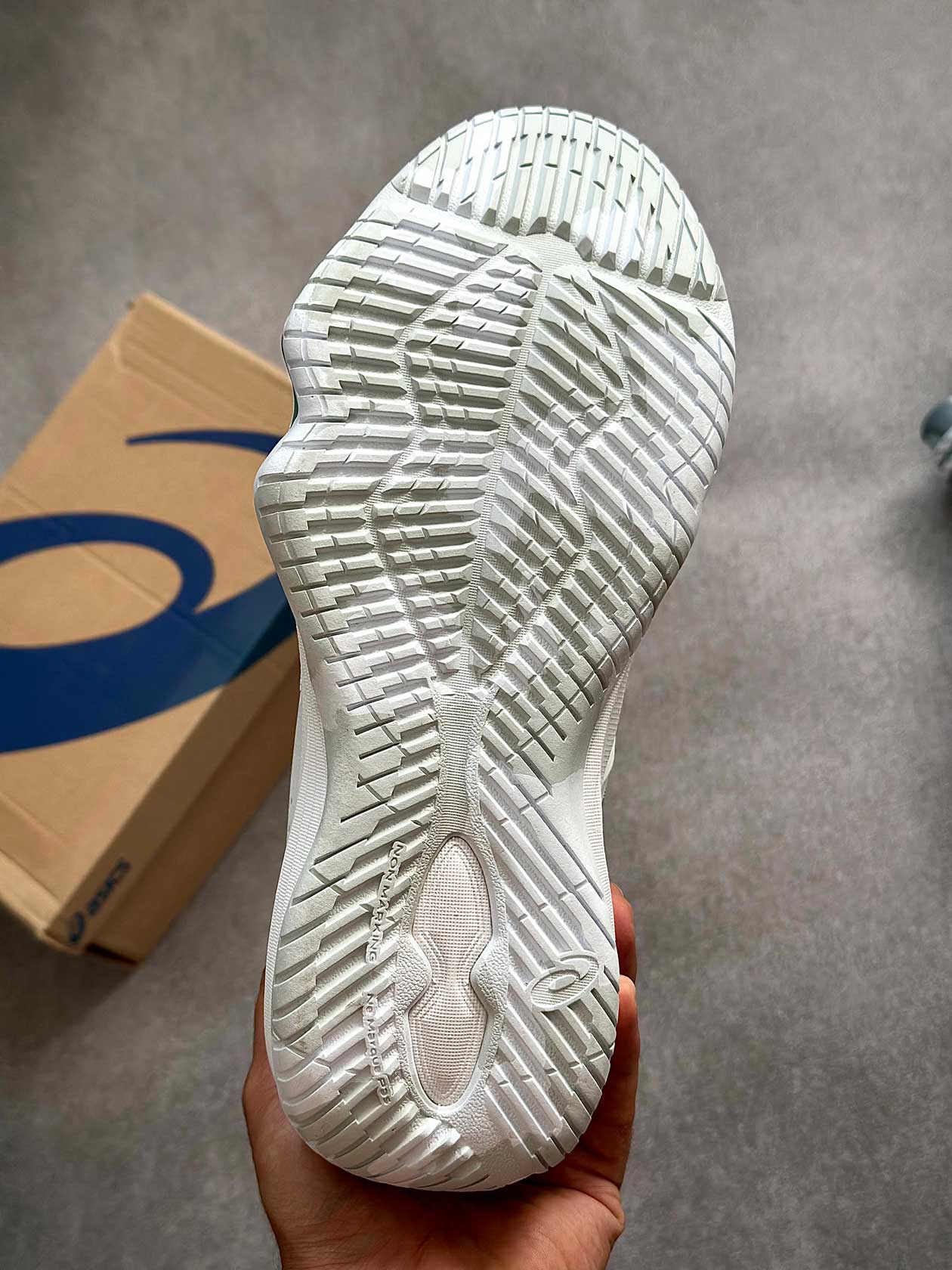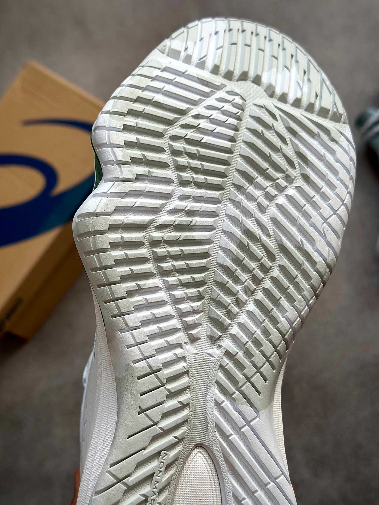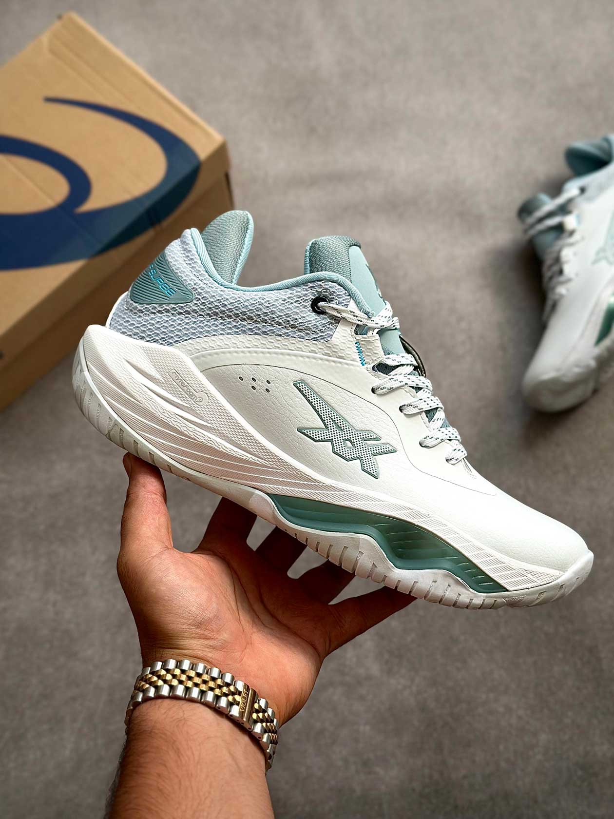 زیره لاستیکی با چسبندگی بالا عملکرد مطمئنی روی زمین‌های سالنی ارائه می‌دهد و تعادل بازیکن را در فرودها، استارت‌های سریع و حرکات جانبی حفظ می‌کند.
