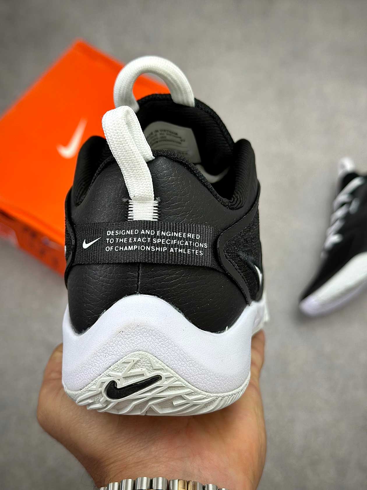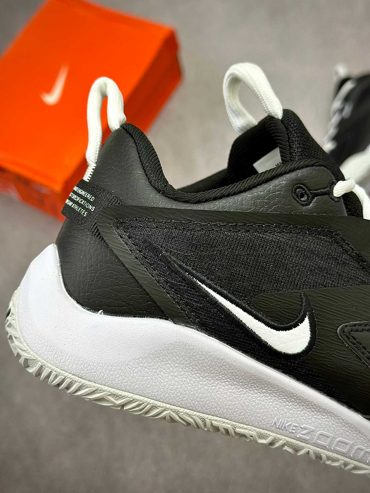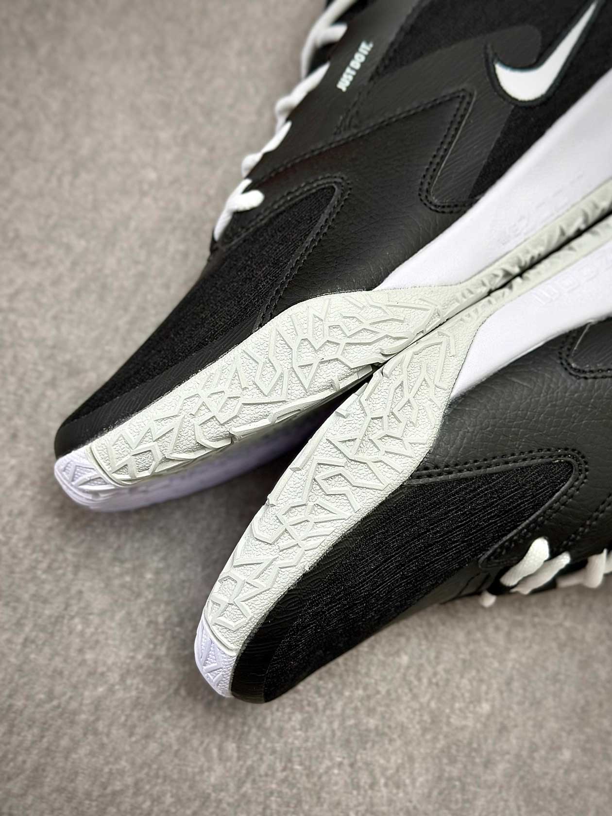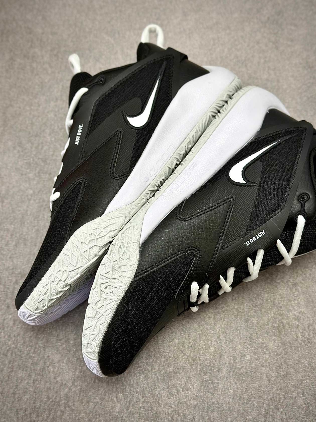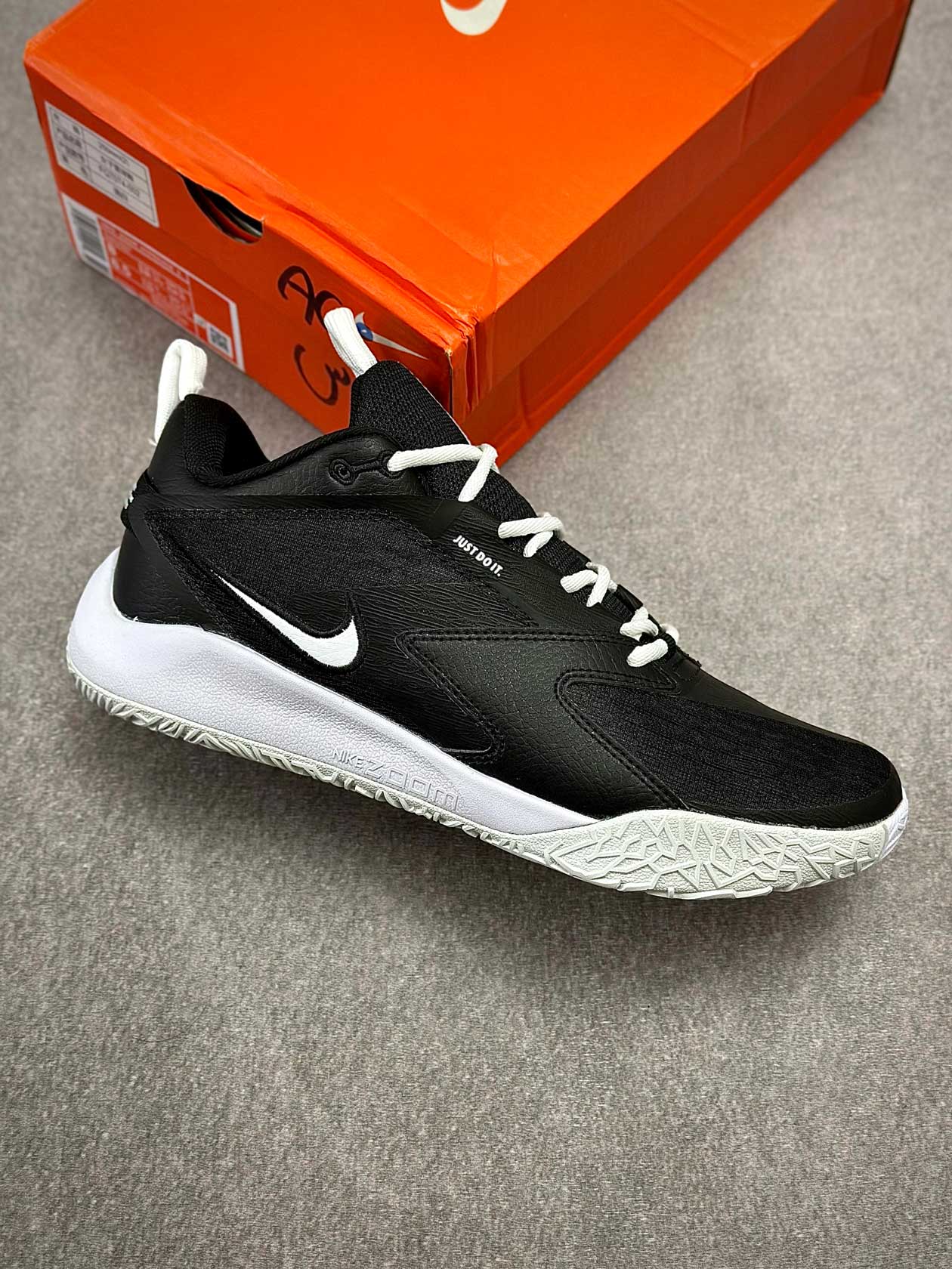 زیره لاستیکی کفش با چسبندگی مناسب مخصوص زمینهای سالنی، تعادل خوبی در توقفهای ناگهانی، استارتهای سریع و فرودها فراهم میکند و از سر خوردن روی کف سالن جلوگیری میکند.